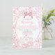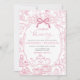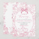 Chinoiserie Baby Is Brewing Tea Invitation, Pink Bow Floral Chinoiserie Teacup Baby Shower, Pink Toile De Jouy Afternoon Tea Baby Shower