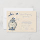 Elegant Chinoiserie RSVP response cards for your guests. Features a Chinese ginger jar with floral elements and decorated with stylised birds, in colours of dusty blues, dark royal blue and cream. Perfect for a outdoor wedding venue or asian themed event. To make more changes go to Personalise this template. On the bottom you’ll see “Want to customise this design even further? Click on the EDIT using Design tool. From there you can change some of the fonts & some colours, move things around or delete what you need.