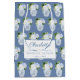 The background of this gift bag design is a watercolor ginger jar vase which is filled with blue and white flowers / green leaves, arranged into a repeating pattern. The text shown is for a Maid Of Honour thank you bag but all of the text fields are customisable to your needs.