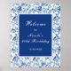 Pretty birthday shower welcome sign with chinoiserie blue birds and flowers. Perfect for a spring or summer wedding. The words can be changed to suit your own details or requirements.