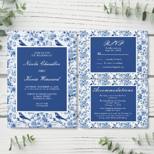 Chinoiserie Blue Birds and Flowers Wedding Enclosure Card