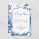 Guide your guests seamlessly from ceremony to celebration with this elegant chinoiserie blue reception card. Featuring timeless toile artwork with pagodas and floral details, this insert provides clear dinner and dancing information. Ideal for classic, garden, or coastal weddings, it pairs perfectly with matching invitations and RSVP cards for a refined chinoiserie wedding suite.