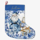 Chinoiserie Blue White Floral Christmas Santa Large Christmas Stocking