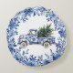 Chinoiserie Blue White Floral Christmas Truck Round Cushion