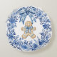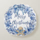 Chinoiserie Blue White Floral Gingerbread Man Round Cushion