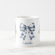 Sip your favourite holiday drink in style with this Chinoiserie Christmas Topiary Tree Mug. Featuring watercolor topiary in blue and white Chinoiserie planter and toile blue bow, it brings a preppy, grandmillennial touch to your holiday mornings. Personalise it with your name to make it uniquely yours or create a thoughtful gift for someone special. A perfect way to enjoy coffee, tea, or cocoa while celebrating the season in timeless style.