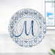 Chinoiserie, delft blue and white tiny flower basket pattern with classic blue customisable text. Template at right for your convenience.