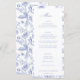 Vintage Regency Blue Chinoiserie Garden Floral, wedding menu. Features, elegant Chinoiserie Style garden floral pattern backing and front border frame.