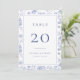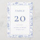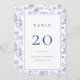 Vintage Regency Blue Chinoiserie Garden Floral, wedding table number card. Features, elegant Chinoiserie Style garden floral pattern backing and front border frame. Please note: table number cards must be numbered and added to your cart individually.