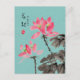 Chinoiserie Freehand Watercolor Floral Lotus Green Postcard