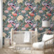 Chinoiserie Jade Flowers & Egrets Pattern Wallpaper