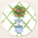 Chinoiserie Orange Citrus Topiary Round Paper Coaster