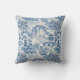 Chinoiserie Pagoda and Birds Blue Floral Design Cushion