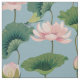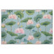 ZAZZLE EXCLUSIVE - Duck egg Blue luxury fabric featuring dragonflies and lily pond leaves and pink lotus flowers