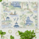 Elegant Chinoiserie design in soft colours on a kitchen towel.