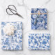 Blue Chinoiserie Toile wrapping paper in 3 styles: Blue and White china, Blue Willow, and Chinoiserie Floral.
