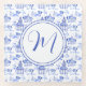 Chinoiserie Watercolor Pagoda Pattern Monogram Glass Coaster