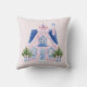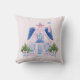 Elevate your holiday decor with this stunning Chinoiserie-inspired decorative pillow. Featuring a pastel pink gingerbread-style house adorned with intricate blue and white details, this design beautifully blends traditional holiday themes with timeless Chinoiserie elements.