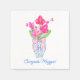 Chinoiserie Watercolor Pink Orchid Ginger Jar Vase Napkin