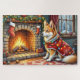 Chinook Sitting by Fireplace with Christmas Lights Jigsaw Puzzle
