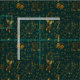 Beautiful green, gold, and orange fabric with motifs of different fantasy creatures. tile size is 2x2 inches.