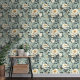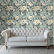 Chintz Style White Roses on Blue Floral Wallpaper