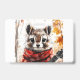 A chipmunk in a red scarf plays a guitar among autumn leaves. Cosy forest vibes meet fun animal charm.