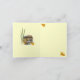 This thank you card features a cute little chipmunk who is stuffing his chubby cheeks as fast as he can on a spring day. He has a black and white stripe down his back, white around the eyes, golden brown fur, and a pink nose. The sweet little critter is surrounded by green grass and yellow lilies. He also appears inside the card along with more lilies. The text can be customised to suit your needs.