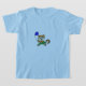 The t-shirt feels and looks great quality, a good thick cotton. It will be a little big for my son, but that means he will be able to wear it and not out grow it too soon. The print was as described on the order when personalised. True size, shape and colour T-shirt- thanks.