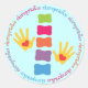 Colourful vertebrae with heart-decorated hand on each side. Curly circular text says "chiropractic chiropractic chiropractic..."