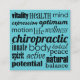 Design features collage of words relating to chiropractic. Trendy square chiropractic business cards!