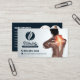 This powerful business card design uses a striking image of a person experiencing back pain to instantly connect with potential clients. The image is paired with a professional logo and contact information, creating a clear and impactful message.