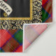 This Chisholm wall tapestry is a stunning piece to have in your home. Featuring framed lion supporters on either side of the clan badge and a golden thistle with crossed basket hilt claymore swords. Tapestries were hung on castle walls to keep the warm in from the cold stone behind them. Comes in all sizes.