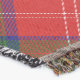 A quality printed throw has its advantages. This is a much finer weave throw than its loopier cousins, and though lighter, it is worth the investment for custom room accessorizing. The back is much prettier than the typical brown, and the fringe on the long sides very vivid, the selvage nicely done. Before photographing, I washed the throw in cold water, delicate, with a thicker woven throw the same size. On tumble dry low, this throw was dry in half the time as the other. This is a very practical quality if you use throws for furniture covers or to wrap up in frequently. The sleekness of the fabric makes it a great layer for accenting or protecting without the feeling of sitting on too much stuff. Perfect for napping or when you feel a light chill coming on. The color printing is beautiful and on this fabric, matched the design and color of my Photoshop image. This is an advantage for blending room fabrics and colors. The fringe on the short sides prints the colors from the design image and therefore varies from the side fringe. I streaked a white fractal line through the plaid pattern to give the illusion of weaving. This printed as crisp as an illusory thread, and put some white in the short side fringe, showing another advantage of print vs loomed- for artistic purposes, line lines, detail, and color integrity can be planned and preserved. My loomed throws have color limitations and more of a needlepoint texture. Print throws reproduce an exact image. The throw felt a little stiff straight out of the package, but this went away in the first delicate wash. Of course I searched the wash water for ink or bleeding and there was none.