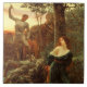 This design features a painting by the English Victorian artist Frank Dicksee (1853–1928). It shows a battle between two knights in the Middle Ages. The courageous men are dressed in full armour. One of the knights is standing on the chest of the other knight, holding his sword up, to signify his victory over the other man. In the foreground is a female beauty wearing a green dress. She has long red hair and she appears to have been bound to a tree, perhaps by the defeated knight. The victor in the vattle will soon untie her and protect the damsel in distress, following the mediaeval code of chivalry. There is also a brown horse next to the victorious knight. The original artwork was painted by Frank Dicksee in 1885.