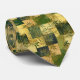 Elegant tie with a Japanese chiyogami-style pattern of gold and green squares with bamboo leaves.