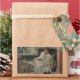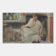 This design features a painting by the English artist Sir Edward John Poynter (1836–1919), who served as President of the Royal Academy of Arts. It depicts a beautiful woman named Chloe who is seated in an elegant portico surrounded by ancient-Roman architecture. She is holding a pair of woodwind musical instruments, like flutes, in one of her hands, and she is holding cherries in the other hand to tempt a small bird that is perched nearby. Chloe is wearing a long flowing toga-like dress and she has green sandals on her bare feet. She has neat brunette hair and she is wearing a colourful necklace. The architecture that surrounds her is painted in all kinds of beautiful colours. There are some tall flowers, including foxgloves and poppies, growing in the garden outside. The coast and the sea can be seen in the distance. The original artwork was painted by Edward Poynter in 1893.