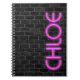 CHLOE name in glowing pink marquee neon lights on city brick wall.