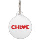 The name Chloe with the letter o replaced with a red love heart. The colours can be changed.