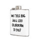 Well made flask, a little better than I had expected. Flask came in clear plastic box which gave it a nice presentation when I took it out of the zazzle packaging. Image is not printed on flask but on sticker. Don't know how this will hold up I haven't used it yet. This would make a Great gift! I plan to purchase more for friends! Cheers. I thought a little brighter than computer. Very crisp, writing wasn't