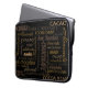 Kewl sleeve for your or a sweet tooth in your life. This neoprene laptop bag adorned with the words chocolate, almonds and dark chocolate text in English, French and German in a variety of colours and font styles, colours and sizes. Click the orange Customise it! button to select a background colour other than black when you click Edit then Background. Be sure to check out Choose your options in the upper right column to see the other sleeve sizes.