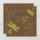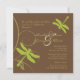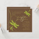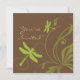 Invitation features Spring green and chocolate brown colours with beautiful flourishes and green dragonflies surrounding fully customisable text. RSVP information area available on invite so no need for additional RSVP's!