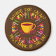 Stylish personalizable ANYONE FOR COFFEE? magnet in chocolate brown colour and CUSTOMIZABLE TEXT. The design shows a cup of cacao surrounded by cacao beans and multicolored raised hands. You can add your name and personalise your text, eg. name of your cacao shop. This cacao magnet makes an ideal favour gift or stocking stuffer for any cacao lover who drinks cocoa and hot chocolate and would add a great uplift to your cacao shop decor.