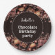 A sweet chocolate party dark brown paper plates for birthday or any occasion, for restaurants and more. Easily personalise the text and have a blast. - Kate Eden Art