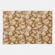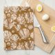 Kitchen towel in a pattern of chocolate brown, tan and creamy white semi-abstract sea shells on a milk chocolate brown background