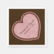 Custom wedding paper napkins done in chocolate brown with graphics of a big pink heart decorating the middle of the napkin. Personalise the brown text, with the bride and groom's names and wedding date.