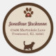 Fun cat lover address labels are round and ready for you to add your name and address. The fun feline theme features a chocolate brown cat, paw print with a heart and a tan inner circle where you add your information.