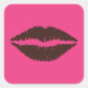 Chocolate Brown Lipstick Print Pink Large Square Sticker