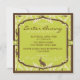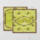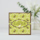 Brown, green, and ivory damask print with sweet polka dot Easter bunnies and 3D-look tag and damask print trim Easter egg hunt invitation.