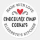 A personalised rustic "made with love" sticker on a white coloured background. To decorate your gift of chocolate chip cookies. Make it yours by adding your own name. A pretty finishing touch for your chocolate chip cookie gift. Designed for you by Blackberry Boulevard.